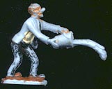 Like most British made figures they suffer from severe paint loss. Polyethylene the plastic used for most plastic figures from the 1950s-70s does not have a solvent so paint does not adhere well and over time flakes off. Last figure (Clarinet player) in picture is a RECAST.