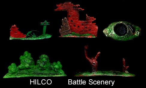 Seldom seen 1/32 Hilco battle scenery, five different pieces as seen above including what I think is a bomb crater.