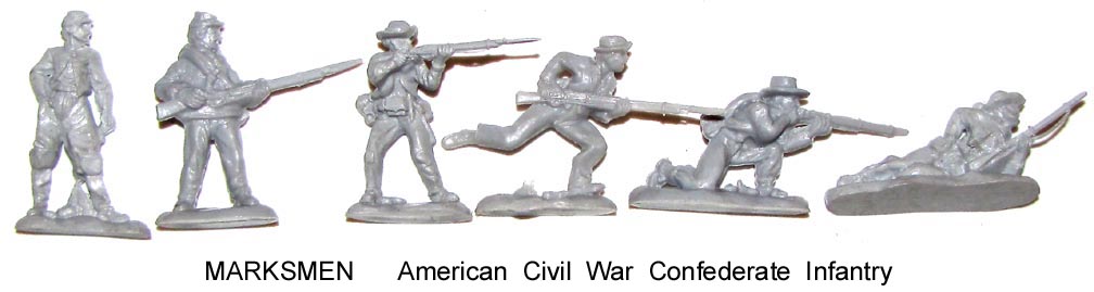 First made back about 1980 the AWI and ACW ranges each had two sets of ten poses each. About 1990 another five AWI British and Colonial + 5 ACW Reb poses were made. These new poses were put into sets with five poses from the first set. Not an ideal situation, but at least there were more figures to be had. As there have been several "SET #s" for each set we will refer to all inventory as "FIRST SERIES or SECOND SERIES" sets. Boxed sets will have 20 figures in 10 poses.